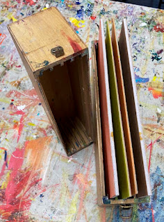 Next, these will go into my wet painting carrier which has slots in it to keep the wet paintings from touching.